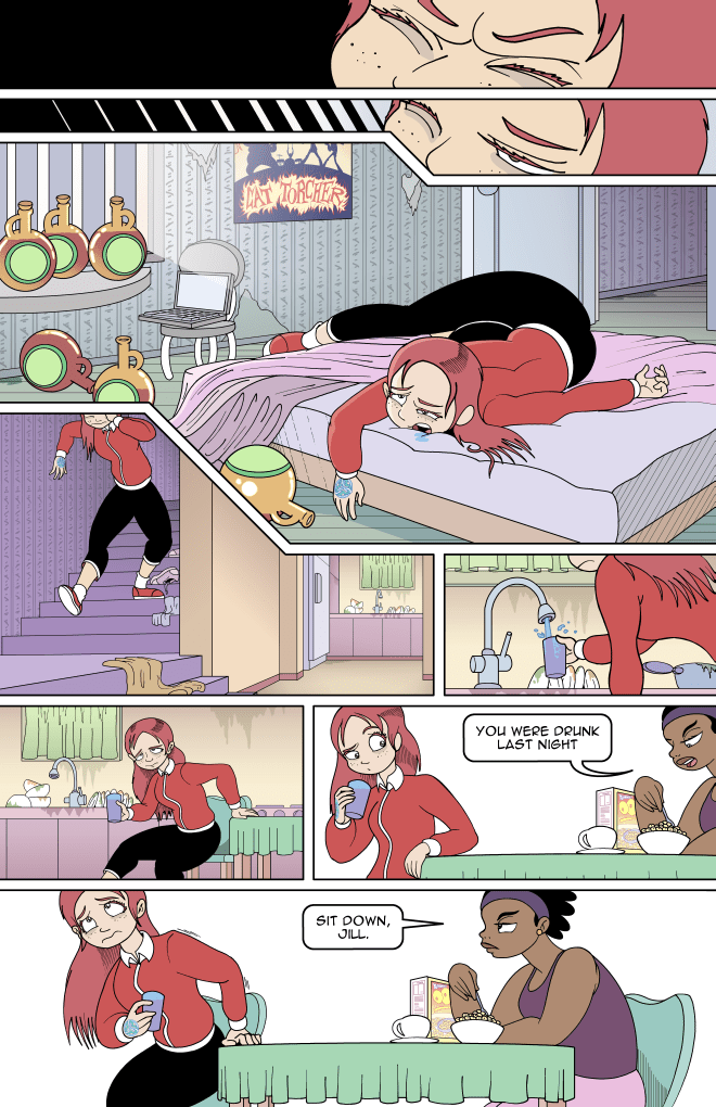 This is also an attempt to establish Tempest as a character. The smart, socially active one who had her shit together. Why is she friends with Jill? Is she friends with Jill, or just roomies? That’s a great question, but she ended up being kind of secondary. I tried to promote Tempest to main character in book 2, but then book 2 got cancelled, c’est la vie.