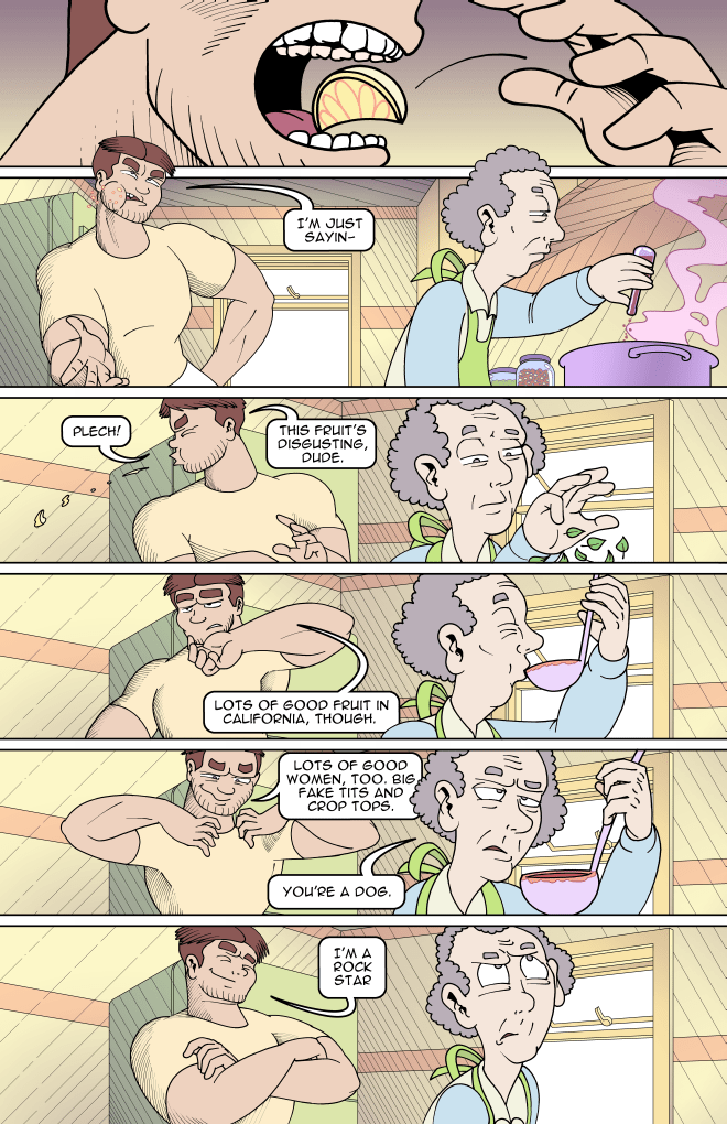 I really like Riley’s hand gesture when talking all these California women with their fake tits and crop tops. Instead of miming fondling a woman’s breasts, he’s miming being a woman and looking down his own shirt. Let’s not pyscho-analyze that too much, but it’s kind of an interesting choice in gesture.
